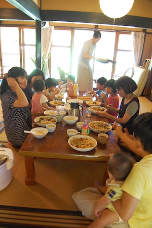のんびりみんなでご飯、ギターをぽろぽろ、日本酒