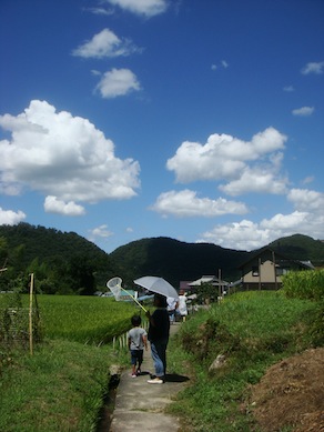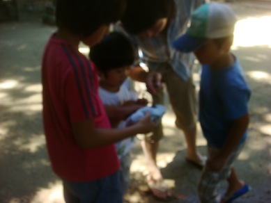 近くの神社に流れる小川的な溝でカニさんを捕まえたり、